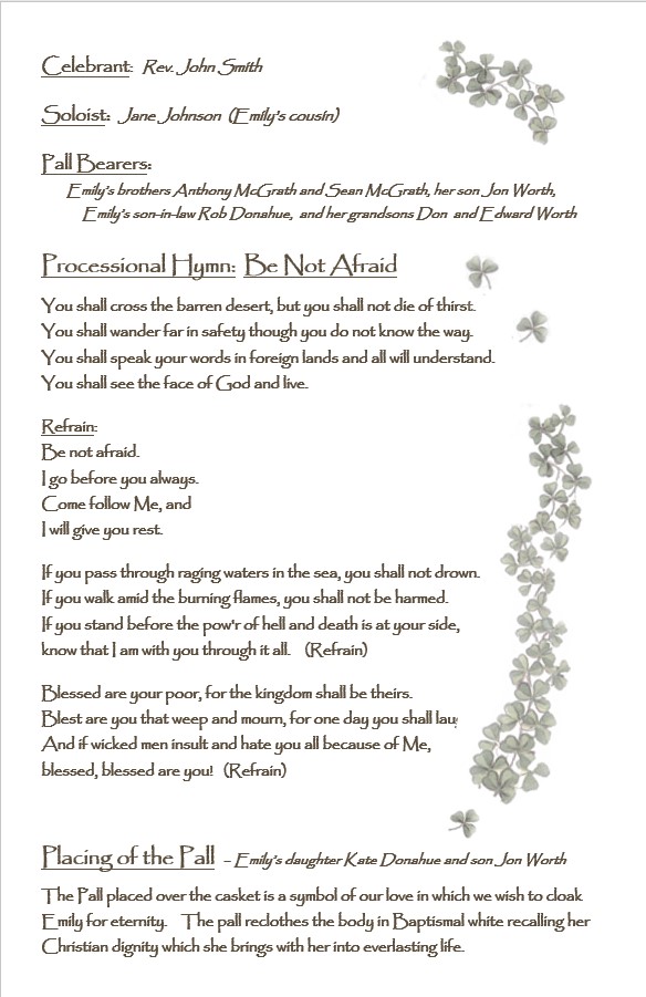 Example of a Full Funeral Mass Booklet Click the side arrows to view each page Front CoverInside front Coverpage 2page 3page 4page 5Inside Back CoverBack Cover