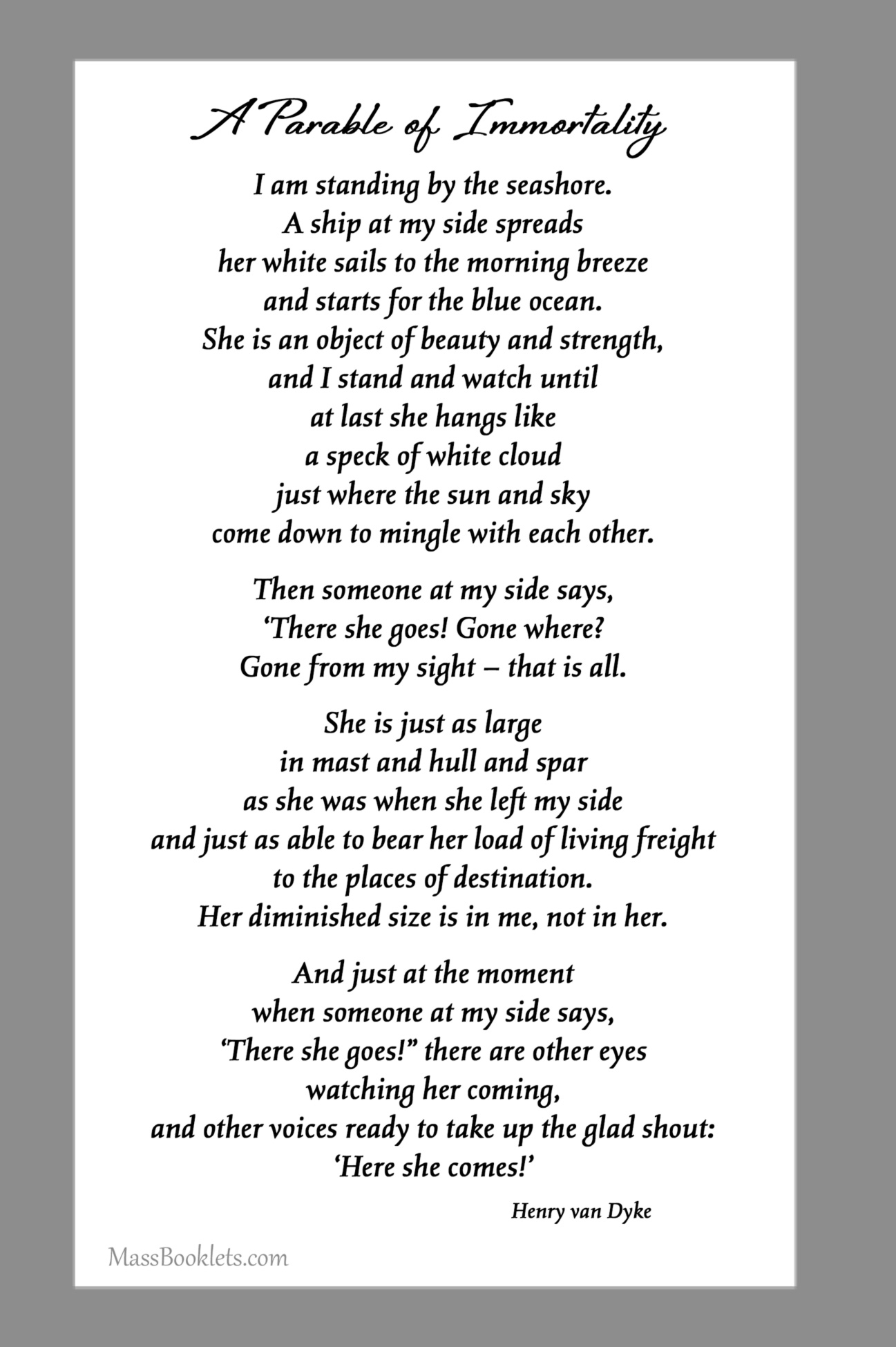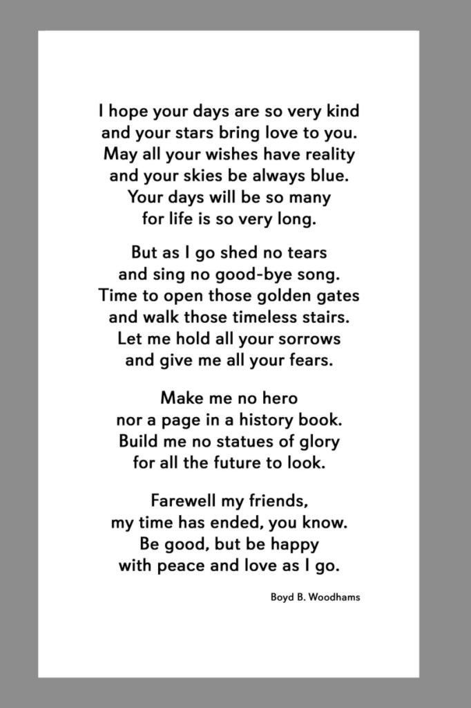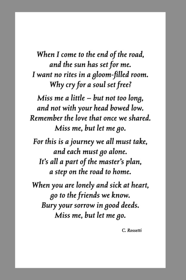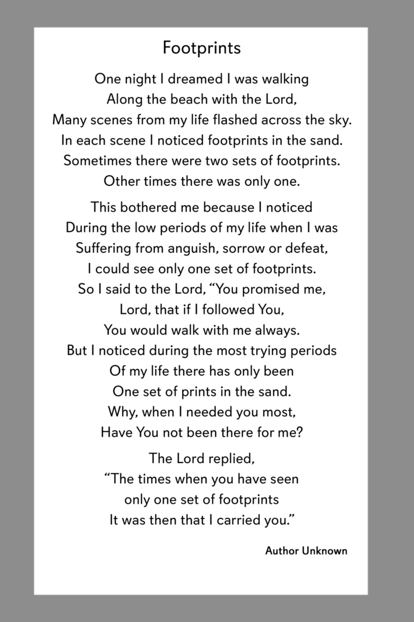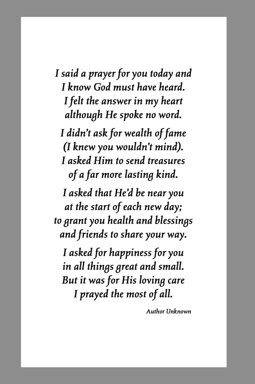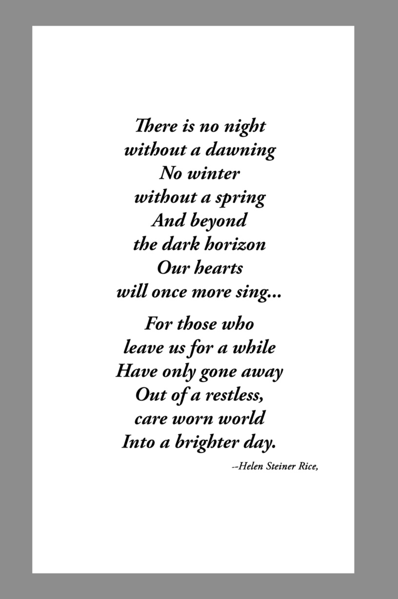 Below are some examples of Prayer Card Verses, Poems, and Prayers for Memorial card Backs. See Poems and Verses for a longer list of poems.