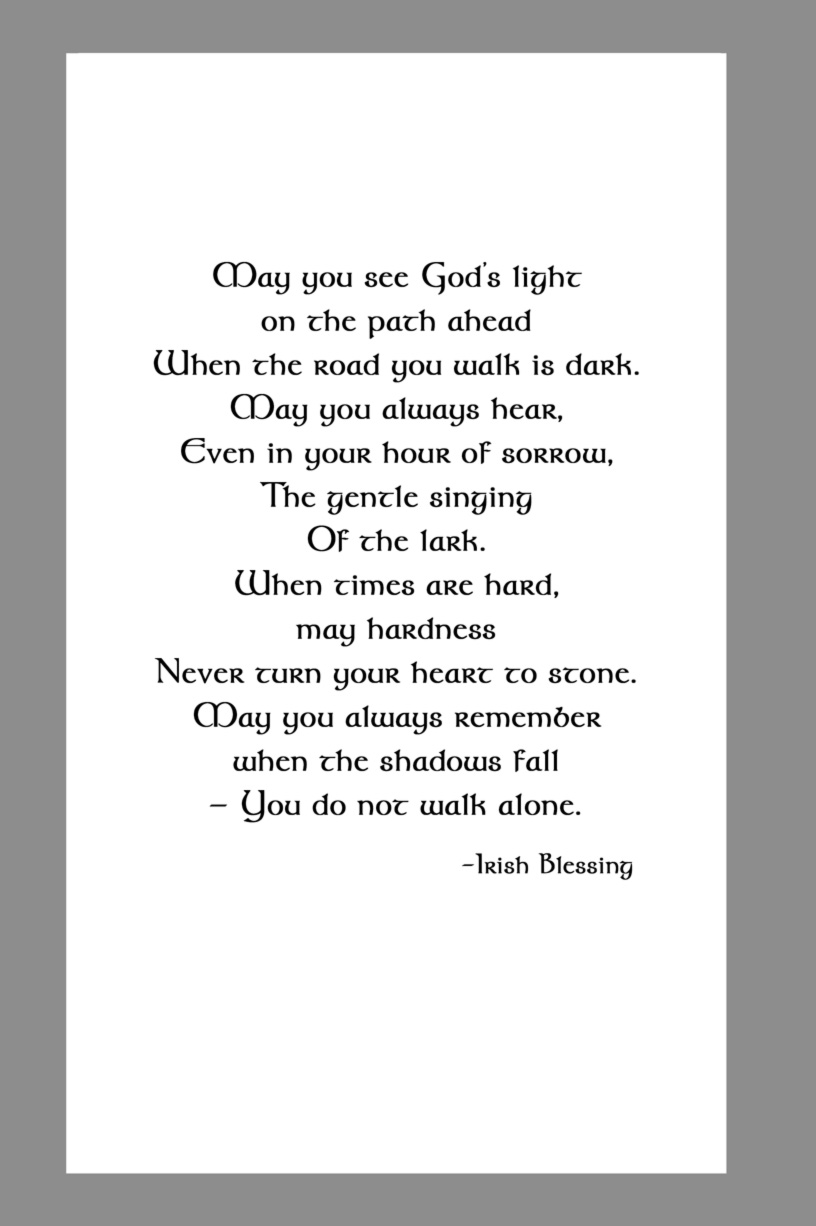 and a chosen poem, prayer, song lyric, or message on the back.