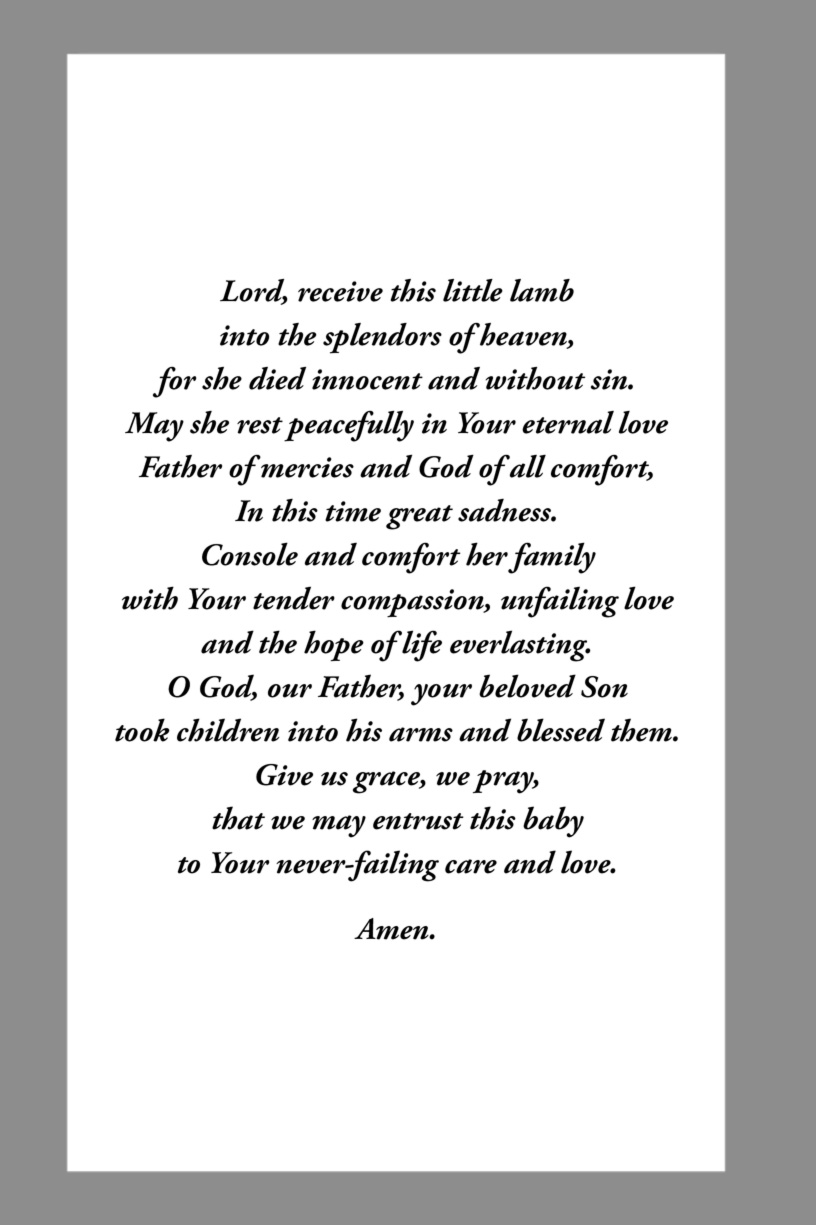 Custom Prayer cards are available with the photo and name of your loved one on the front