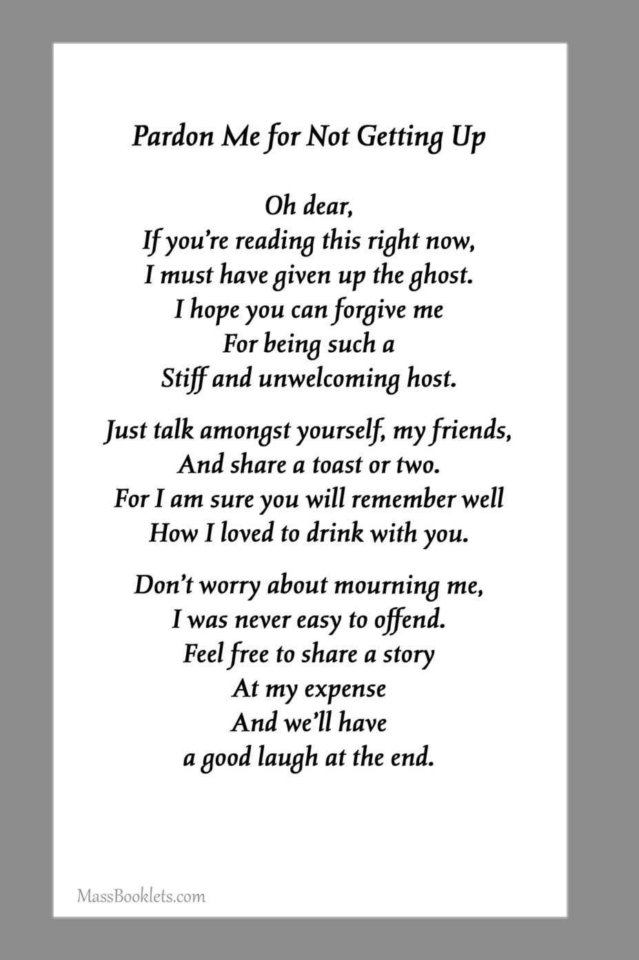 Non-Religious Poems & Verses for Back