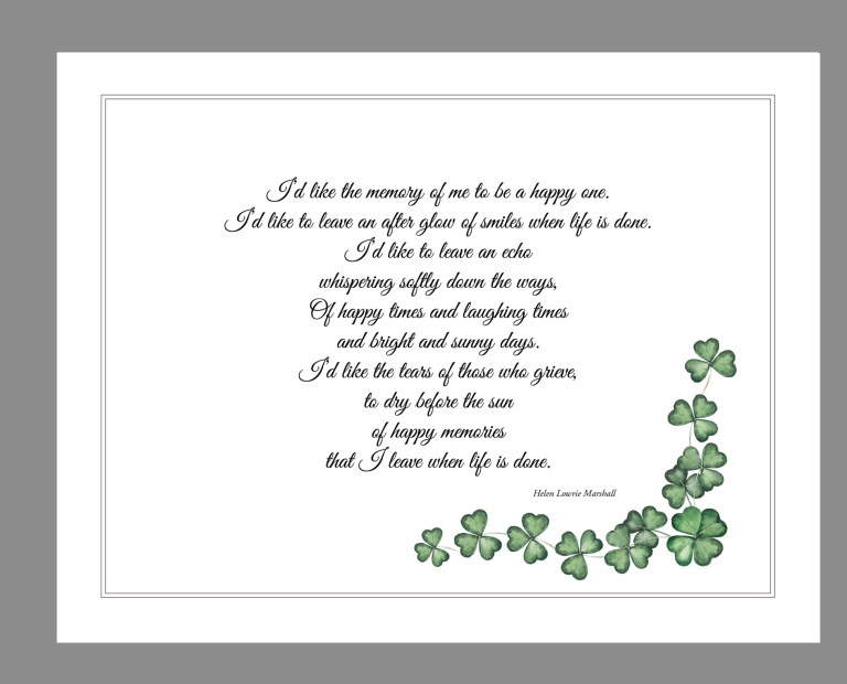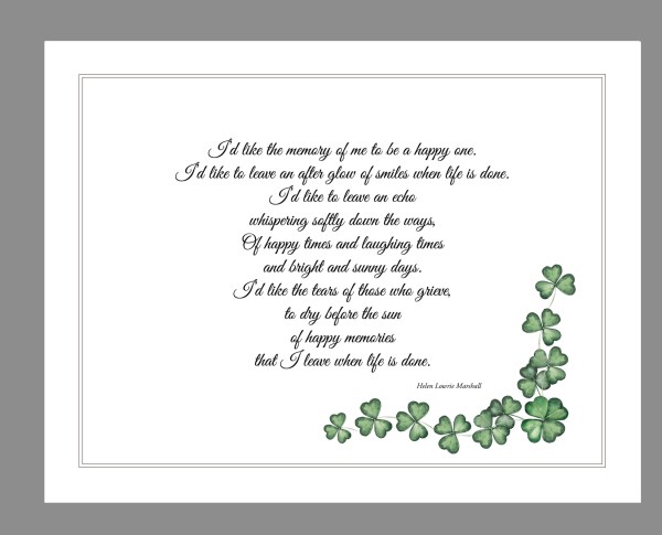 Custom Shamrocks Funeral Thank you notes with shamrock accents. Size A2 folded cards (4.25″ x 5.5″) with envelopes, laser printed on 216gsm cardstock