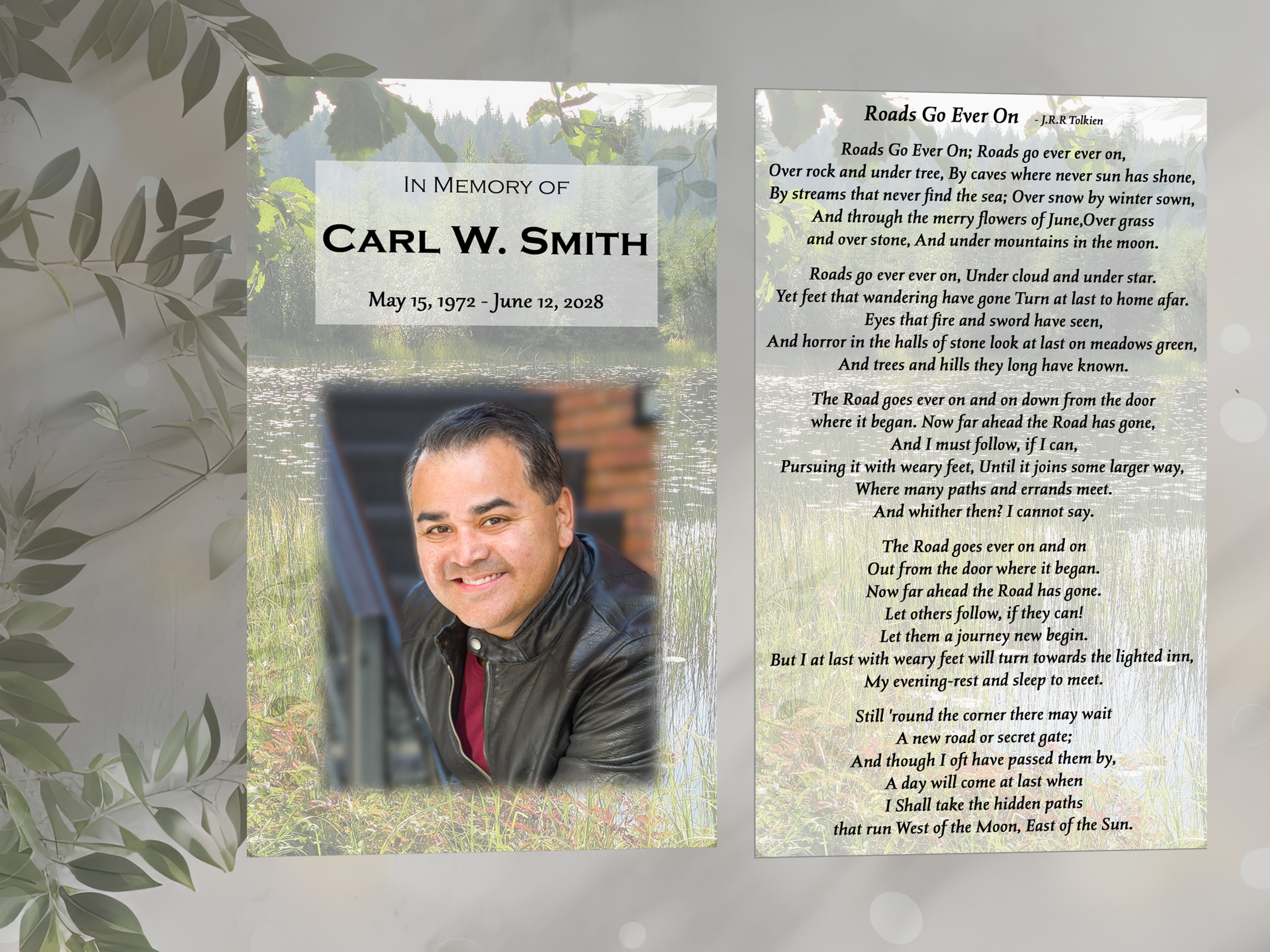 Available with Photo and name of your loved one on the front and a chosen poem, prayer, song lyric, message, or portion of obituary on the back.