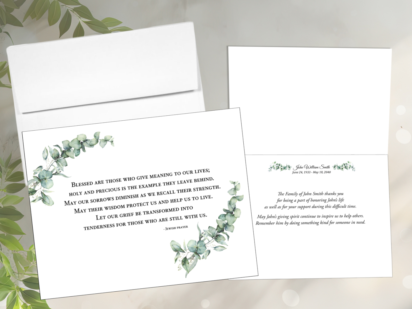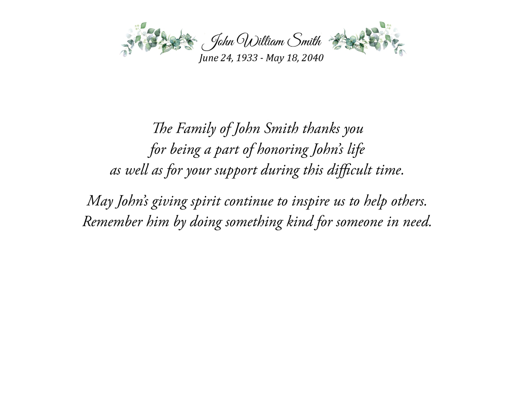 Funeral Thank You notes Size A2 folded cards (4.25″ x 5.5″) with envelopes, laser printed on 216gsm cardstock (Mohawk Via Smooth Pure White)