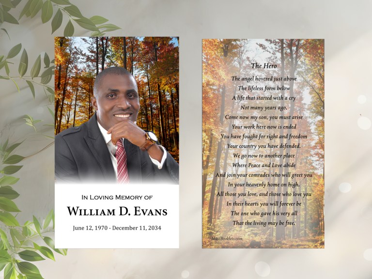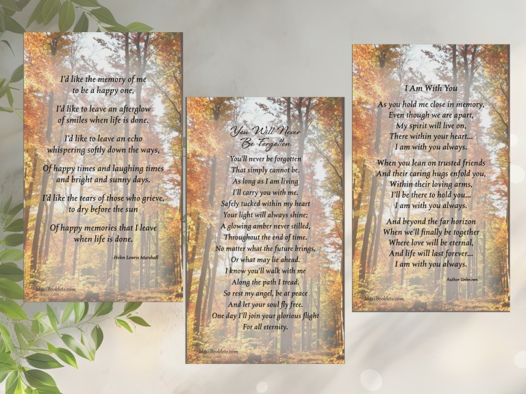 Fall Trees Custom Prayer cards are 2.5 x 4.25 inches laser printed on cardstock (7mil Laminated)