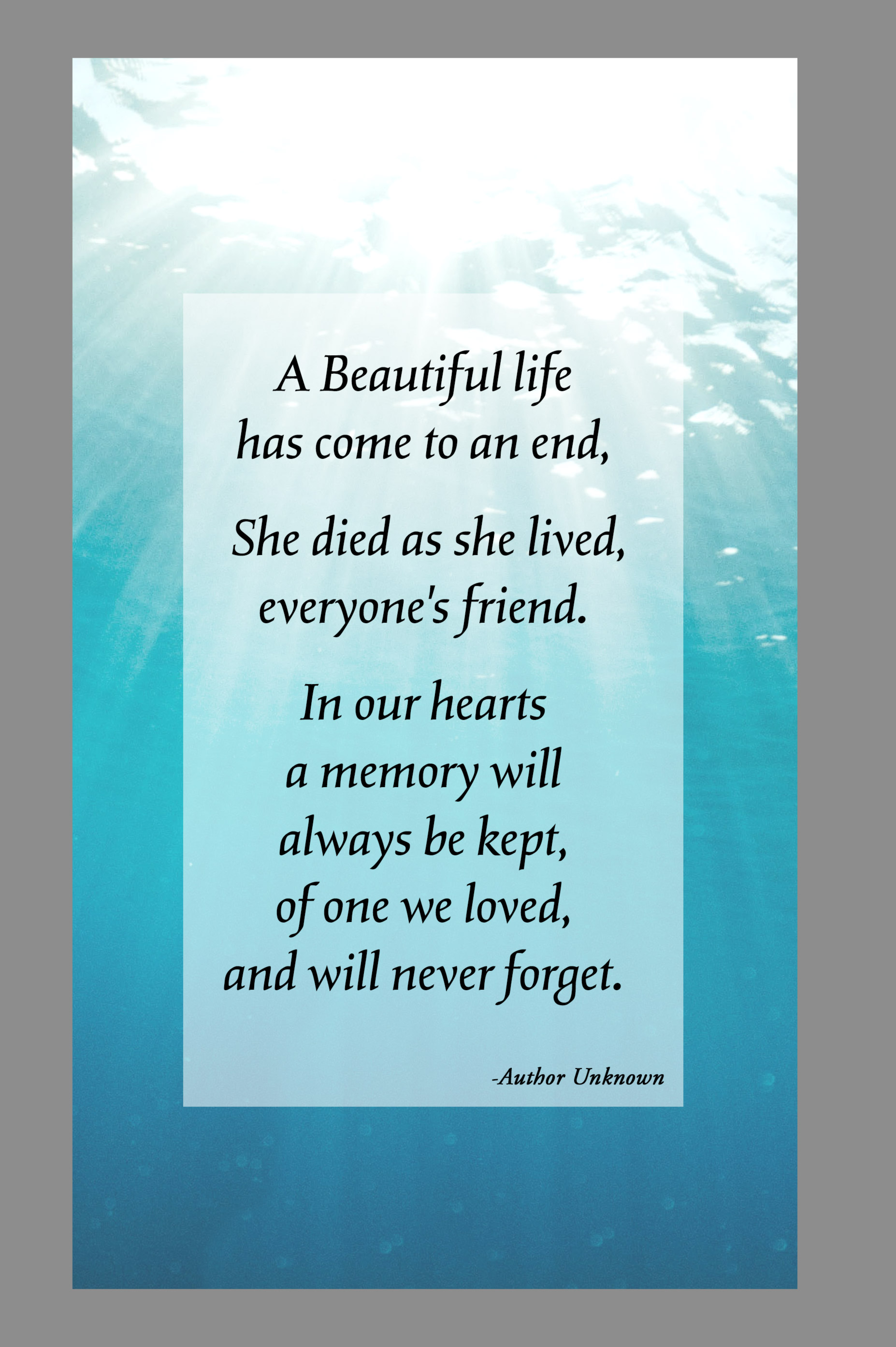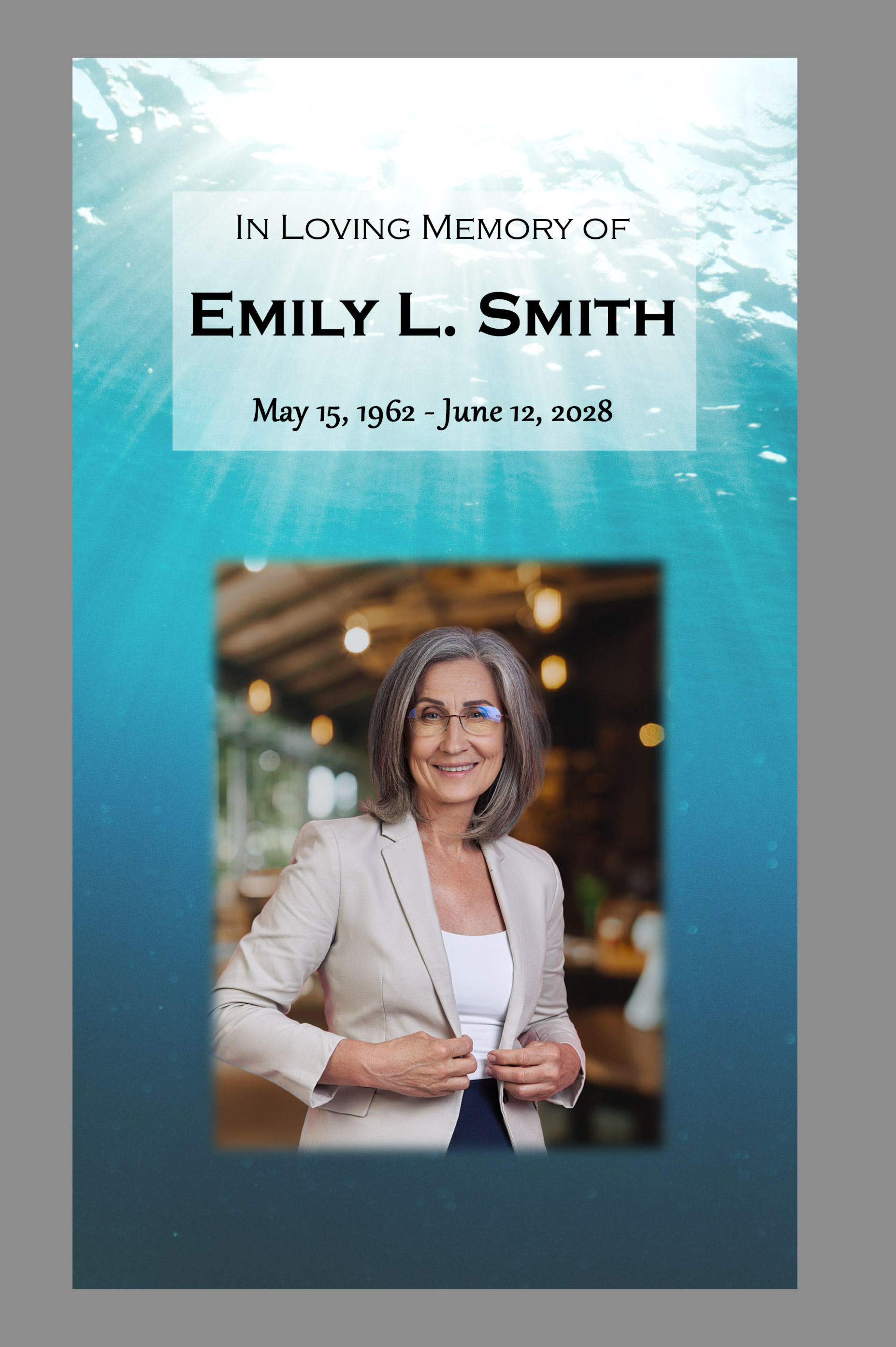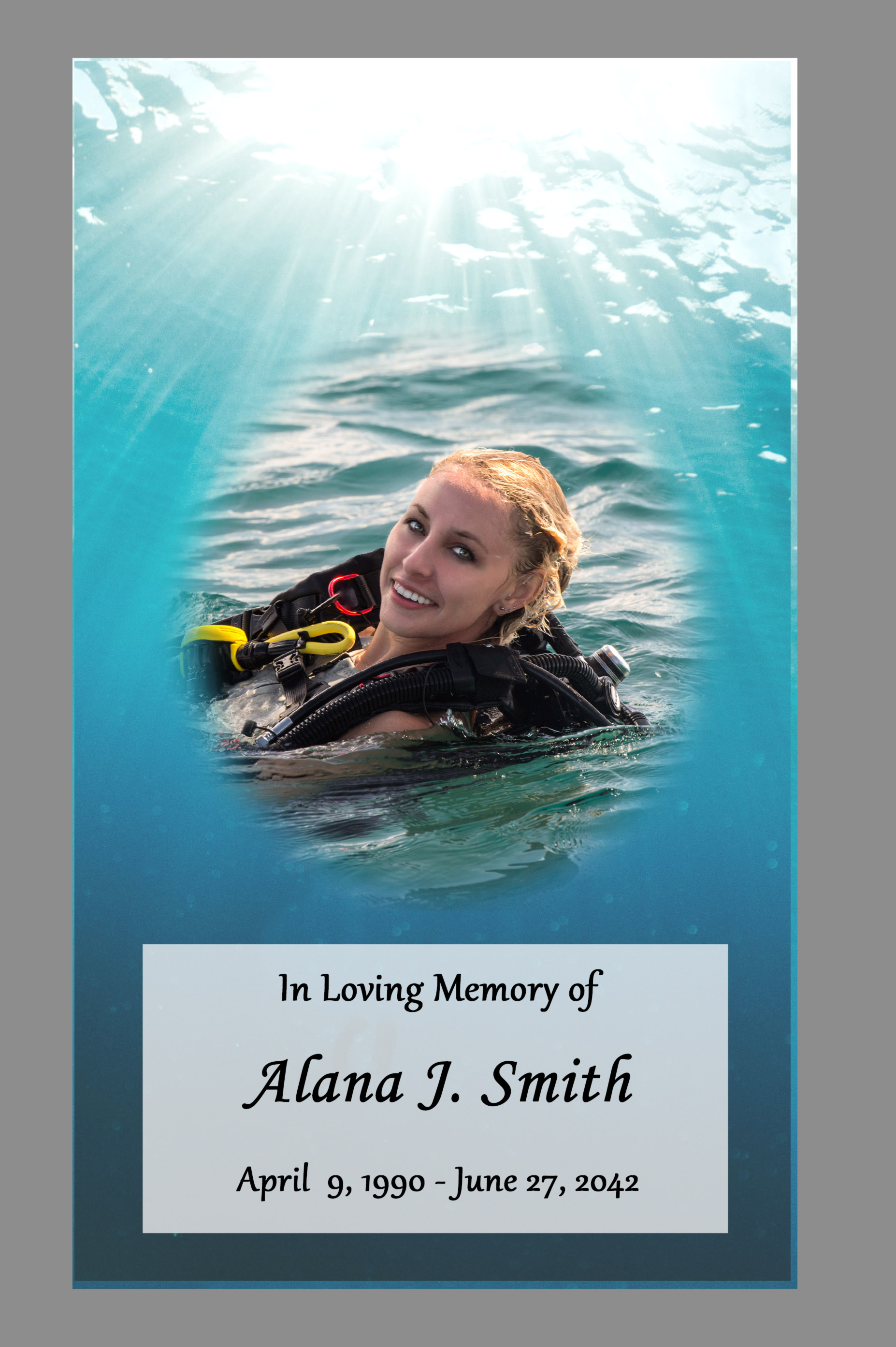 Underwater Memorial Cards are 2.5 x 4.25 inches laser printed on cardstock (7mil Laminated)