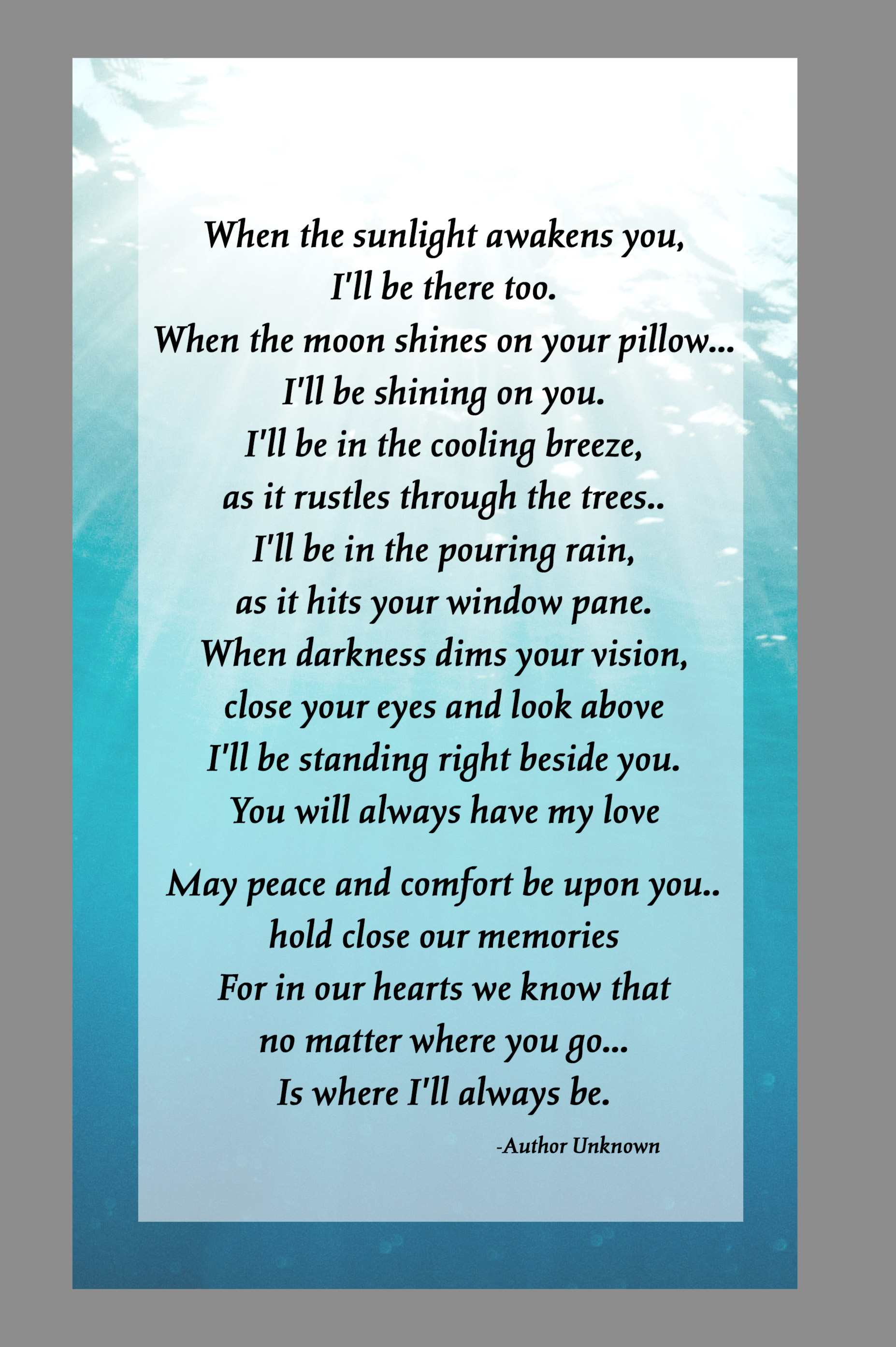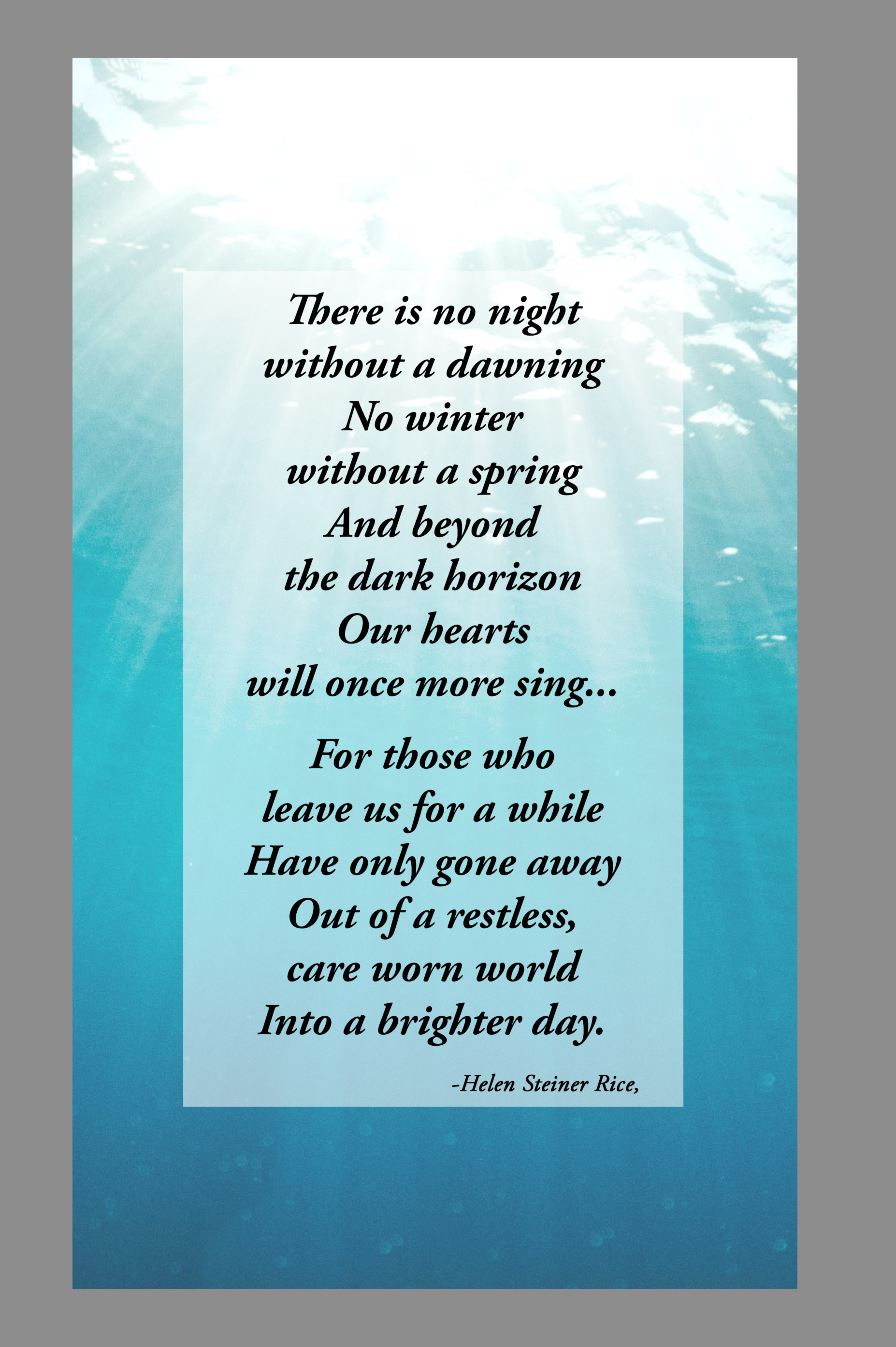 Available with Photo and name of your loved one on the front and a chosen poem, prayer, song lyric, message, or portion of obituary on the back.