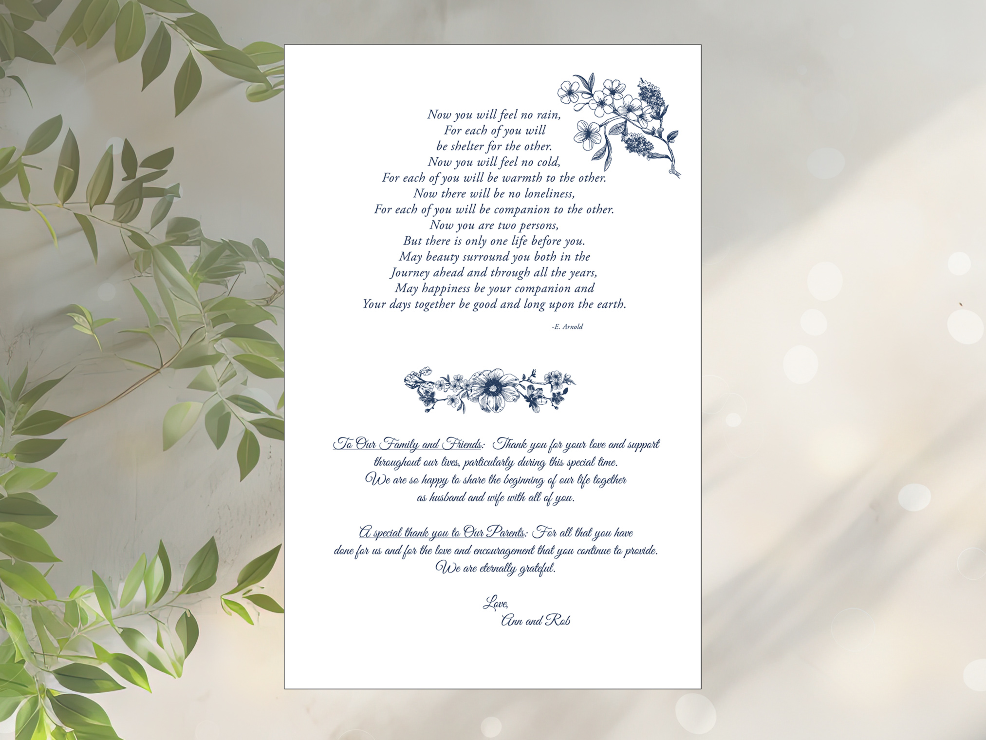 Floral Sketch Custom Wedding Mass Programs contain a basic outline of the Wedding Mass