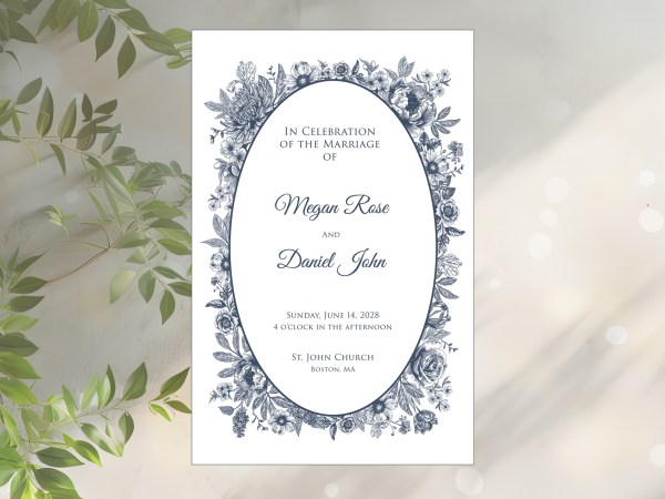 Wedding Mass PROGRAMS Floral Sketch Blue