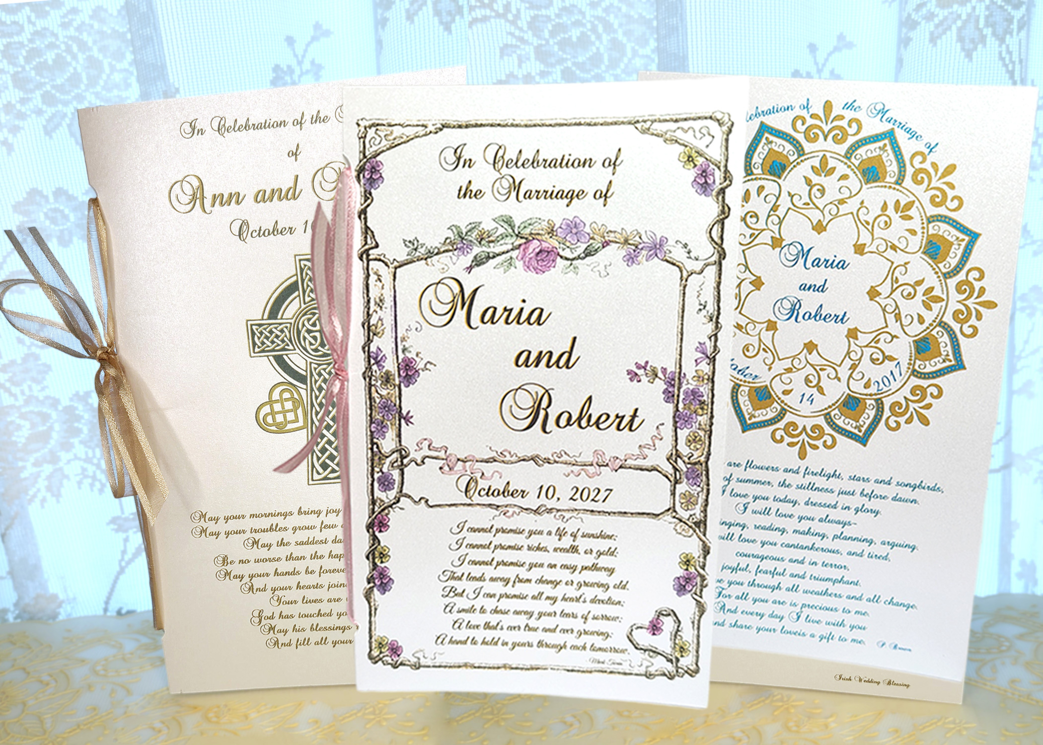 Selections and Customization Forms: A. Selections for a Wedding with Mass Reading Selections for Mass Hymn Selections for Mass Prayers of the Faithful Info Cover Gallery Poems/Verses Wedding Mass Customization Form *please fill out and submit as soon as possible* B. Selections for a Wedding Ceremony NO Mass Cover Gallery Song Selections for Ceremony and Reception Dances (under construction) Poems, Verses Wedding Ceremony NO MASS Customization Form *please fill out and submit as soon as possible* Three Easy ways to start an order: Online Shop Text to Chat 617-446-3332 or to email click: Contact